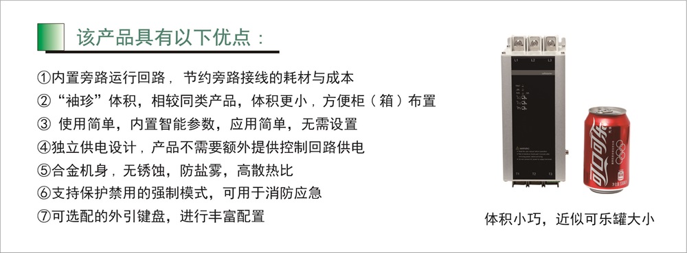 SST系列内置旁路式电机软启动,集成旁路接触器于一体,较大的缩减了应用时的施工成本。合金高强度机身,控制单元内部供电设计,免设置快速部署,小巧精悍!